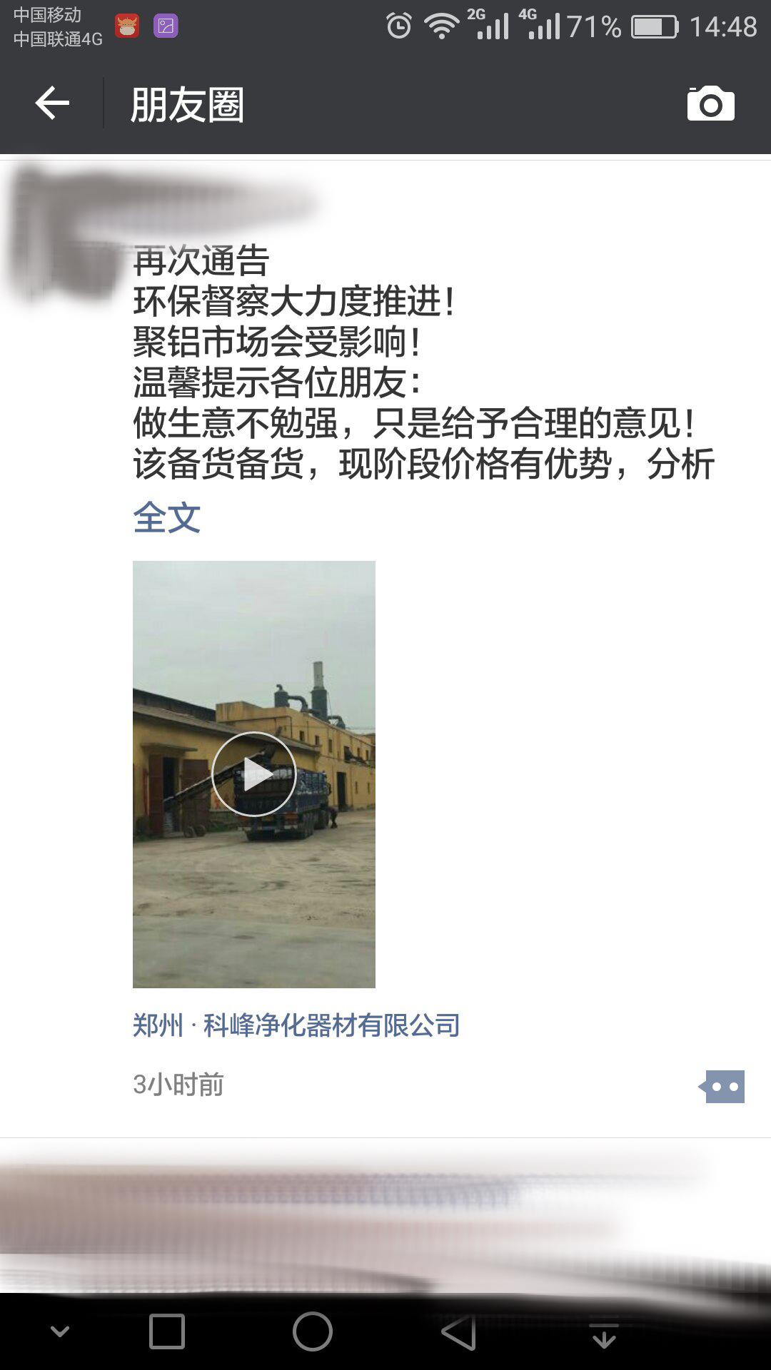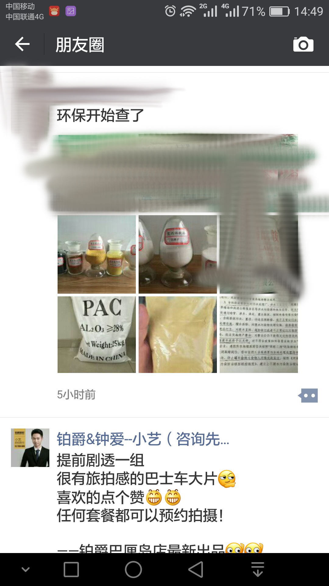 近幾日,鞏義市環(huán)保局加大了對化工企業(yè)的檢查力度,關(guān)于企業(yè)安全規(guī)章,環(huán)境保護(hù)措施等開會嚴(yán)查。規(guī)定立即實(shí)行。關(guān)于聚合氯化鋁產(chǎn)品會不會漲價,另行通知。請關(guān)注朋友圈動態(tài)。周經(jīng)理微信:13503999995.